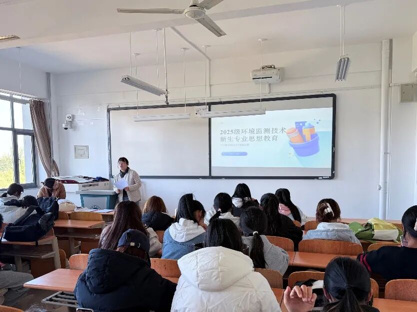 环境监测技术专业则在教室内开展了一场系统全面的专业认知讲解会。专业负责老师围绕课程体系、技能培养、职业发展方向等内容进行了深入介绍,帮助同学们初步构建起对专业知识结构与未来就业前景的整体认知,为后续学习奠定了清晰框架。